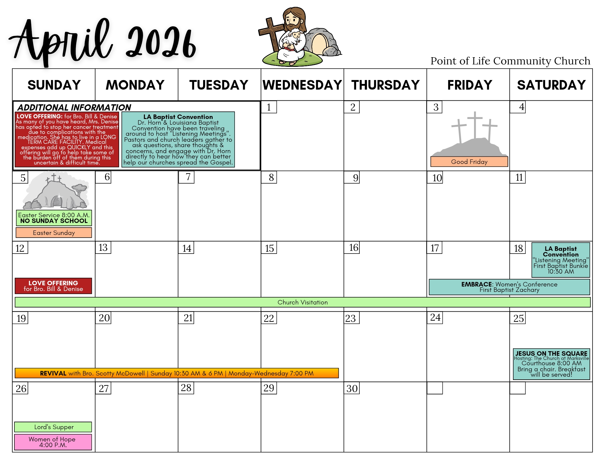 Starting as a backyard Bible study in 2015 is when Point of Life Community Church was established. We have gradually grown from a backyard Bible study, to a small building, to our now full blown church building that was built in 2017! Time and time again we faced obstacles, hurtles, and even resistance, but time and time again God has provided and made a way for us, showing us that Plaucheville is where He wants us to be. God has placed us in the Plaucheville community to serve and provide spiritual support, and He ensures we have what we need.
